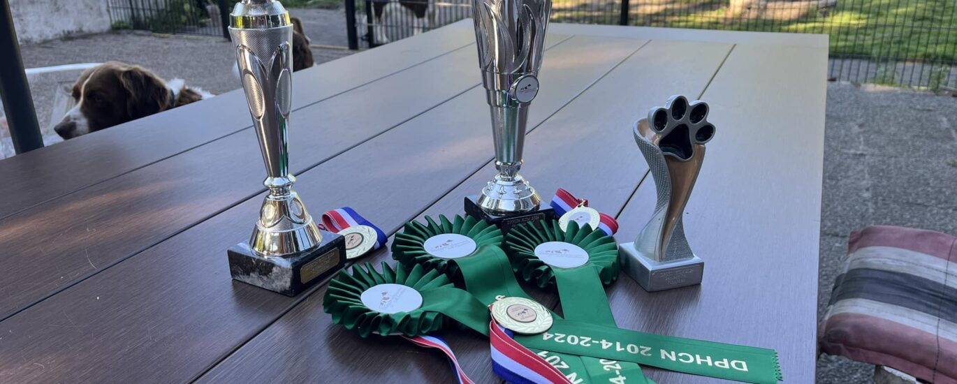 Wij hadden drie honden ingeschreven en zijn met 2 U’s, een VB en drie mooi bekers weer naar huis gegaan.